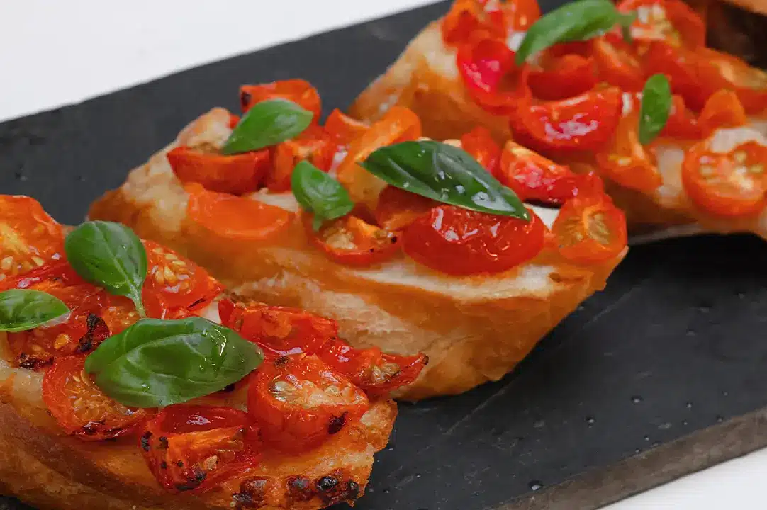 Fresh, simple and Italian-inspired, these Tomato & Fresh Mozzarella Crostini feature crisp toasted bread topped with ripe tomatoes, creamy mozzarella and basil. They make a classic European antipasto or light starter that highlights the natural flavours of quality ingredients.